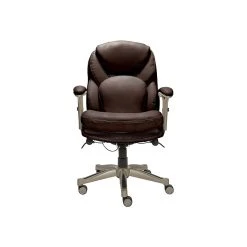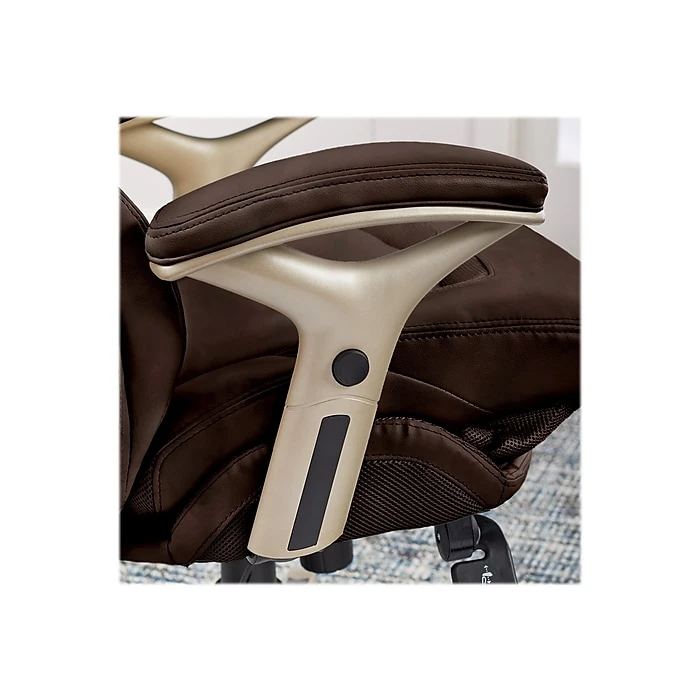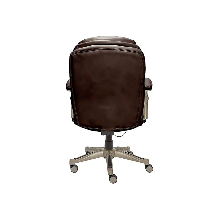 Imagine an office chair that helps promote strength and flexibility in your back. That’s the Serta Works ergonomic executive office chair with Back in Motion technology. This feature-rich, performance-focused chair helps its users become more productive and efficient by maximizing lower back support and comfort while seated. The Back in Motion active seat technology swivels the lumbar forward like the pelvis tilt exercise, promoting strength and flexibility in your core. The push-button adjustable armrests and pneumatic height adjustment can be customized to find the right fit for you. And the multilayered cushions are comfortable yet supportive, so you’ll feel refreshed and rejuvenated, even after a long day.