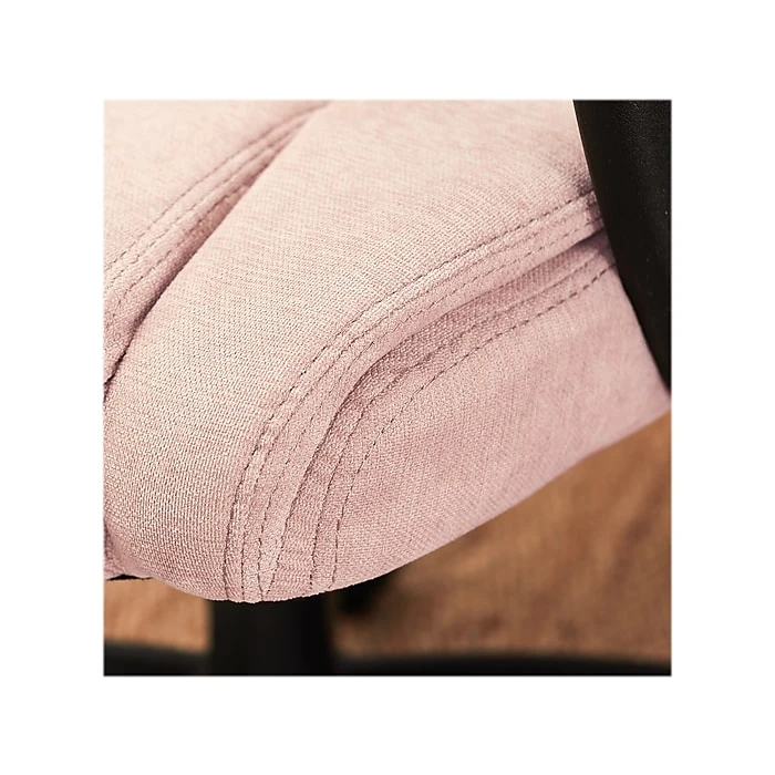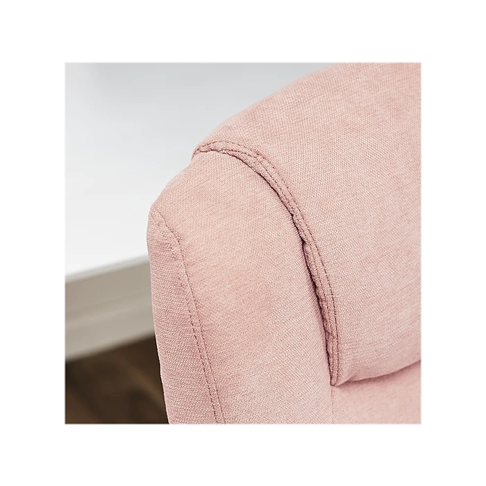 - Upholstered in soft pink fabric