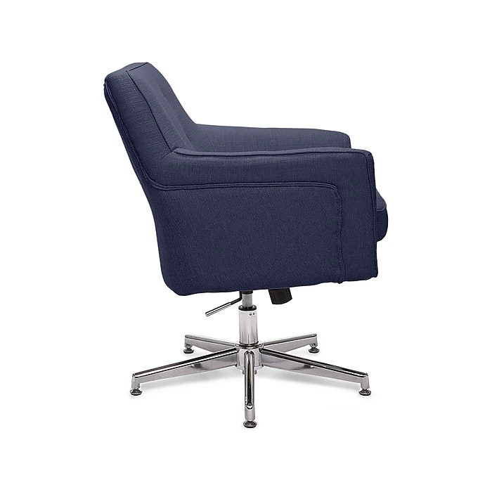 - Twill upholstery in blue; chrome-finished stainless steel base with casters offers 360-degree mobility