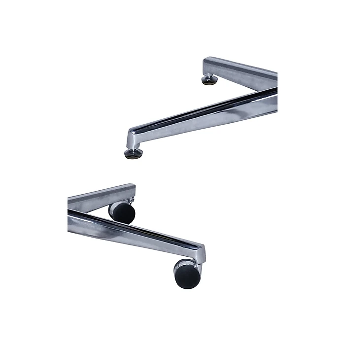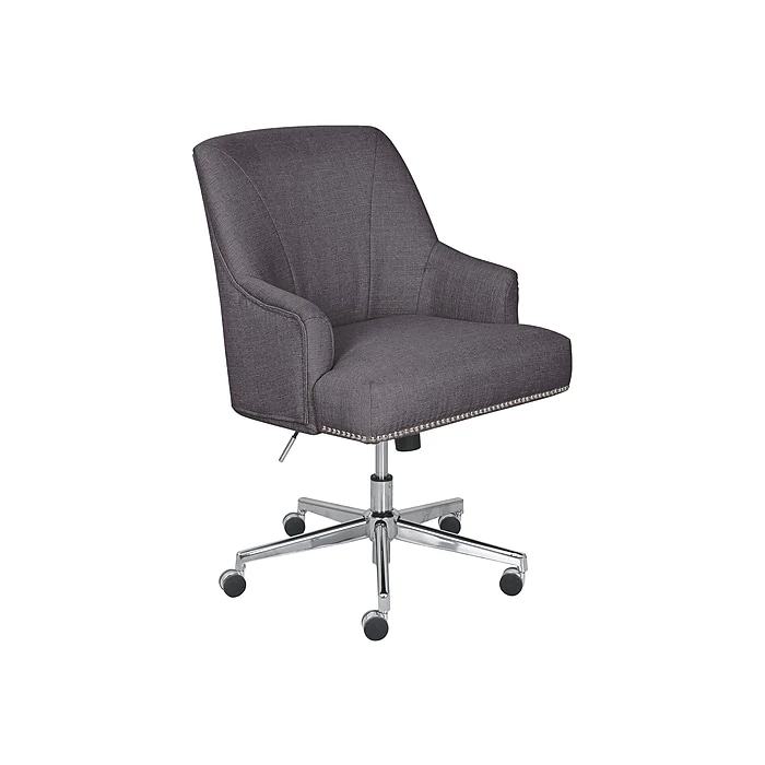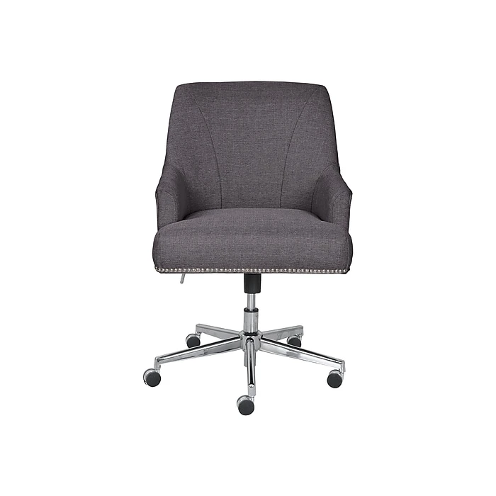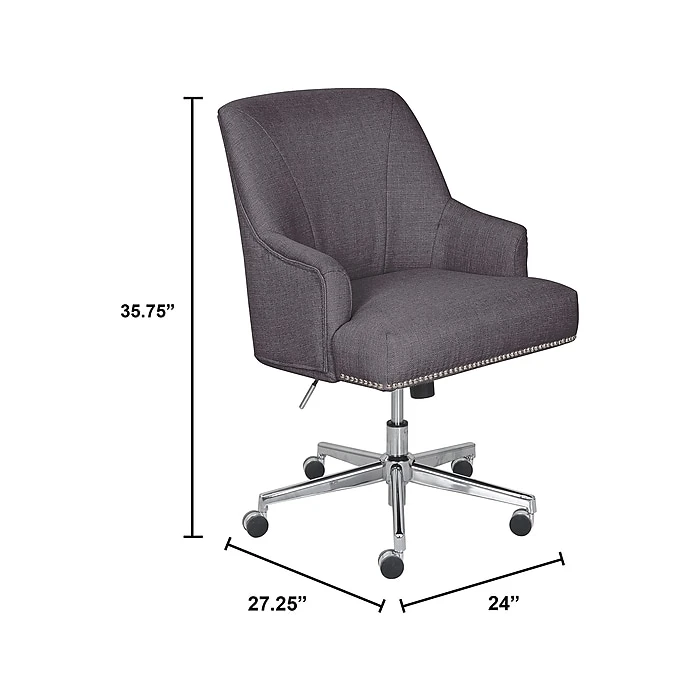 - Upholstered in graphite color twill fabric; chrome-finished stainless steel base with casters offers 360-degree mobility