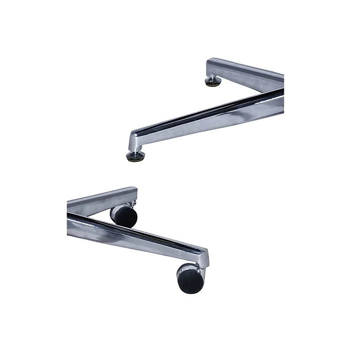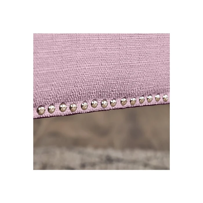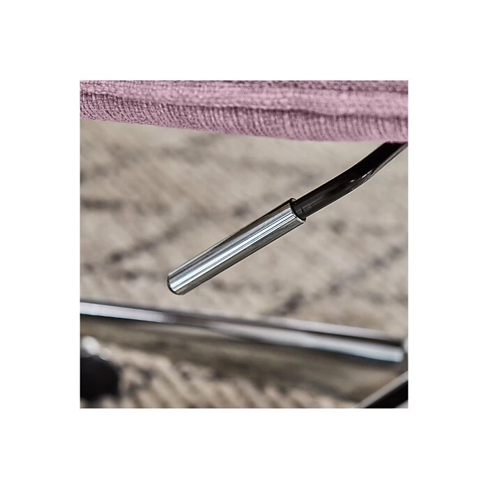 - Upholstered in lilac color twill fabric; chrome-finished stainless steel base with casters offers 360-degree mobility