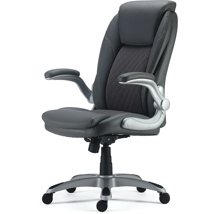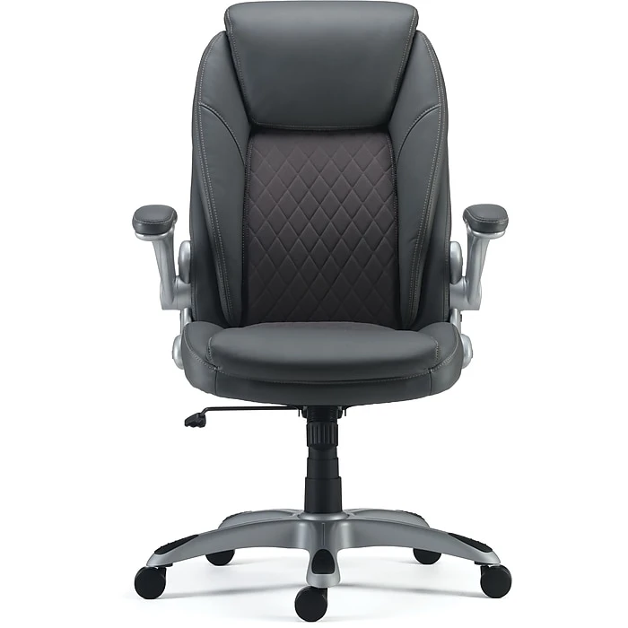- Gray bonded leather and quilted fabric task chair for elevated comfort and style