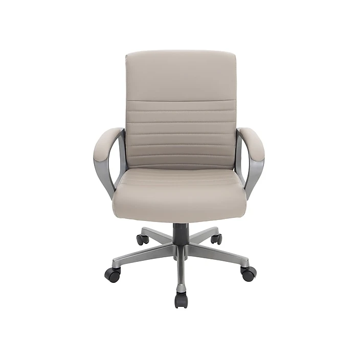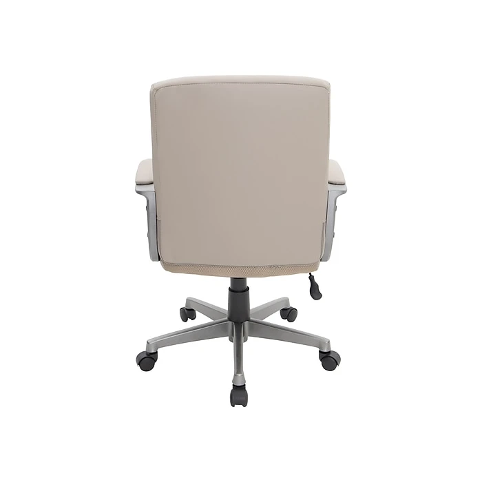 Stay comfortable while you work in this Tervina™ taupe managers chair. Padded armrests provide added comfort, and built-in lumbar offers additional support. The soft upholstery looks and feels just like real leather for an elegant finishing touch. Use the pneumatic seat height adjustment and tilt tension to find then lock the perfect setup for your body.