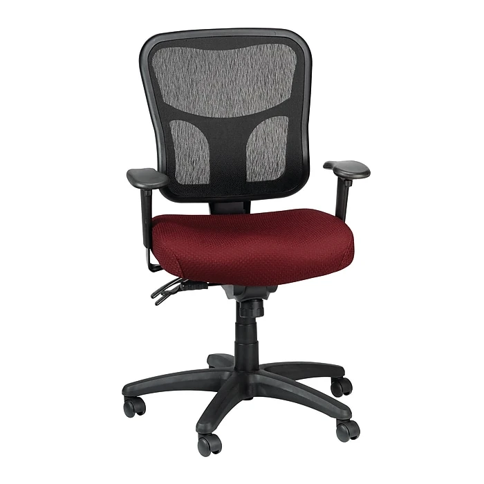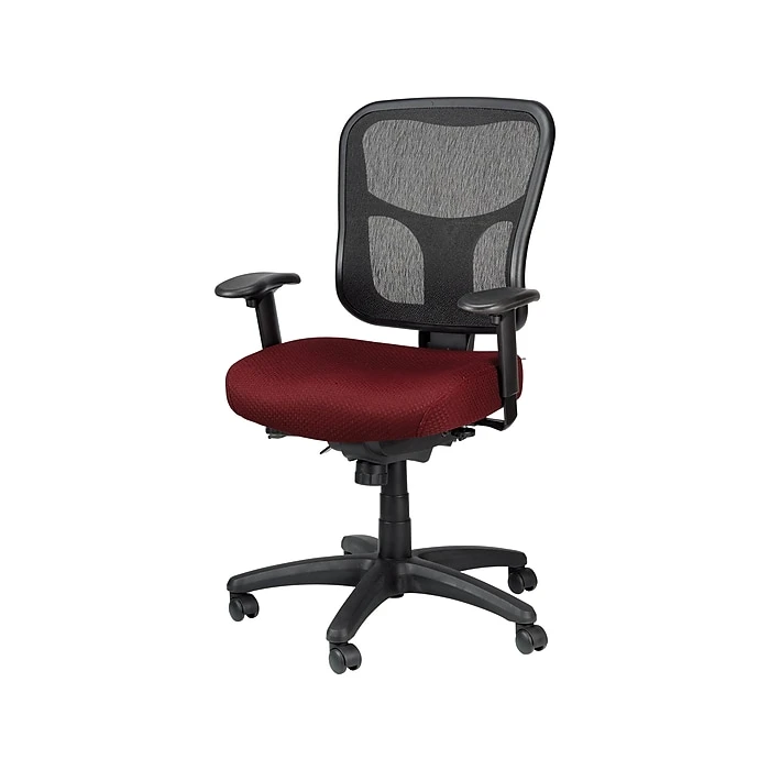 - Burgundy mesh upholstery allows air to circulate