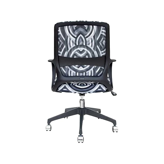 - Features a patented ESC fabric upholstery in a Grayscale Echo design and a black base with silver-tone accents