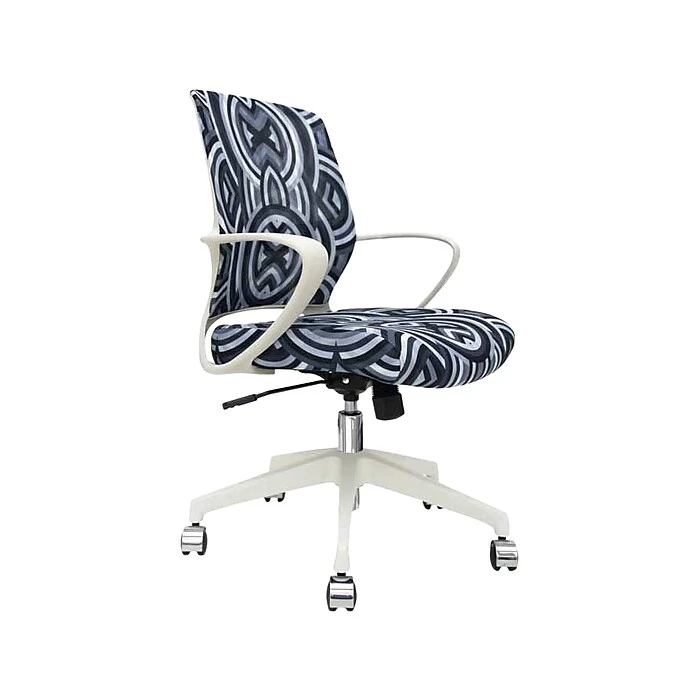 - Features a patented ESC fabric upholstery in a Grayscale Echo design and a white base with silver-tone accents