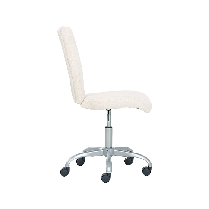 The True chair provides all-day comfort for you. Upholstered in soft Sherpa ivory fabric on all seating surfaces. A padded seat and back for additional comfort. Pneumatic seat height adjustment for convenient use. Weight capacity up to 250 lbs.